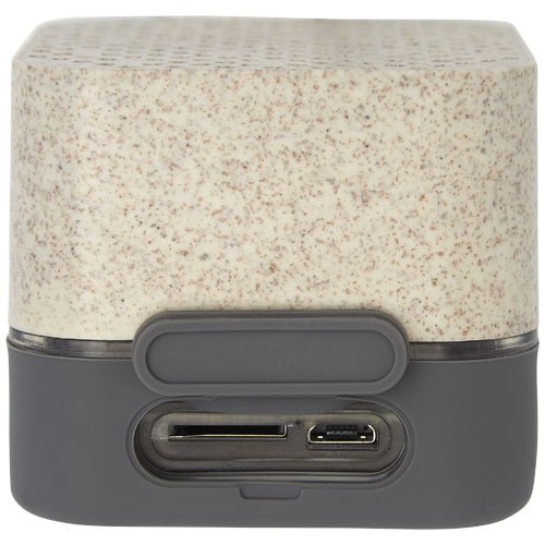 Bluetooth® 5.0 høyttaler laget av 51 % hvetehalm og 49 % PP-materiale. Har et innebygd 350 mAh oppladbart litium-ion-batteri som gir opptil 1,5 timers spilletid ved maksimalt volum. Med en 3 watts høyttalerutgang og innebygde musikkontroll/mikrofon er Aira Bluetooth® høyttaleren den perfekte bordhøyttaleren. Pakket i gaveeske og leveres med en manual (begge i bærekraftig materiale). Leveres med en mikro-USB ladekabel.
