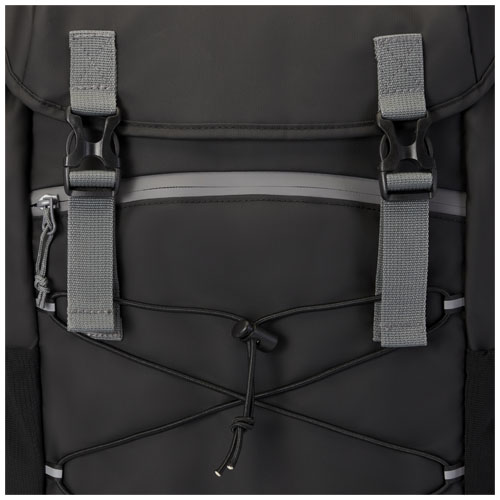 Vanntett PC sekk laget av GRS sertifiserte resirkulerte materialer, inkludert glidelåser. Den har et romslig 15,6" laptoprom med snøring og justerbare spenner for å maksimere lagringsplassen under klaffdekselet. Denne ryggsekken har flere lommer, inkludert en frontlomme med glidelås og elastiske snorer for oppbevaring og organisering i tillegg til refleksrør for synlighet. Den støpte og polstrede baksiden og den justerbare bryststroppen gjør den behagelig å bære med seg, også når den er fullastet. GRS resirkulerte materialer inkluderer hovedstoff, fôr, nett og glidelåser. Kapasitet: 23 liter. PVC fri.