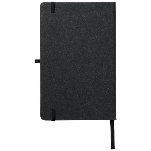 A5-notisbok med perm laget av lærrester. Har et elastisk bånd, pennesløyfe, båndmarkør og 80 ark med 80 g/m² linjert papir.
