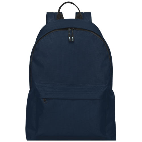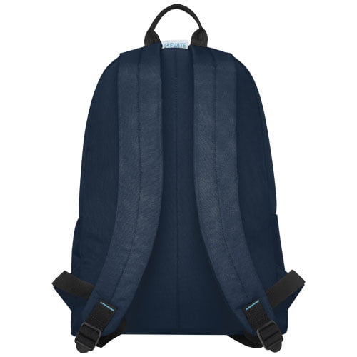 Bærekraftig GRS sertifisert RPET ryggsekk produsert av 80% resirkulerte materialer. Stort hovedrom med glidelås, en liten lomme med glidelås på innsiden og et rom med glidelås foran. Leveres med komfortable skulderstropper og et håndtak.