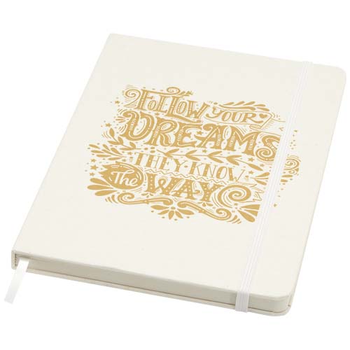 Bass A5 notatbok med hardt omslag har 80 linjerte ark med 80 g/m2 papir, og er laget av resirkulerte melkekartonger.