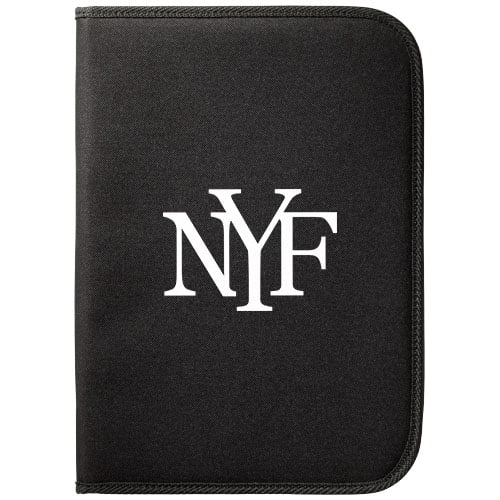 Dokumentmappe med glidelås, dokumentlommer og notablokk med 20 linjeark. Penn og tilbehør ikke inkludert.