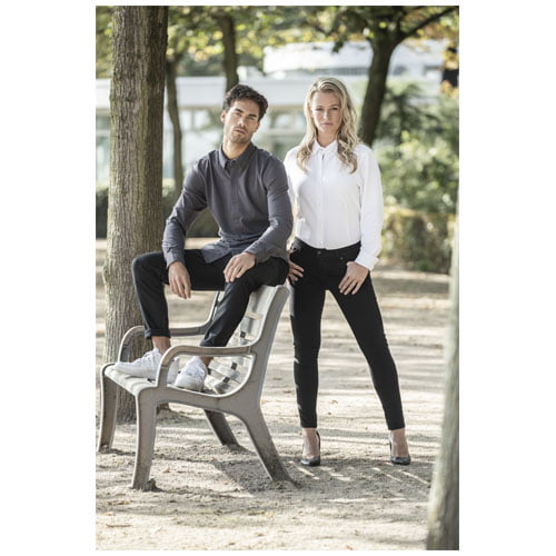 Krage i samme stoff. Stretch materiale. Justerbar mansjett med enkel fold. Button-down krage. Formede sømmer og midje for bedre passform. Sateng kantbånd på innsiden av kraven. Graverte fargematchende knapper. Vevet hovedlabel.