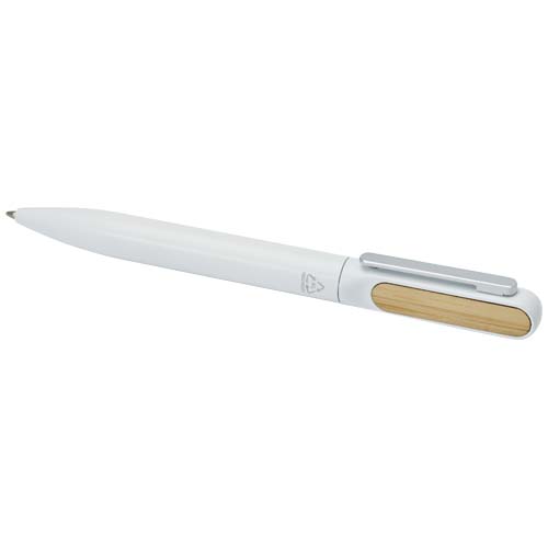 Blanca kulepennen har en øvre pennekropp laget av resirkulert plast med farget spraybelegg og bambustilbehør på begge sider. Den nedre delen av pennekroppen er laget av resirkulert aluminium med et farget spraybelegg. Blekkfarge: Sort. Skrivelengde: 400 meter. Spisstørrelse: 1,0 mm.