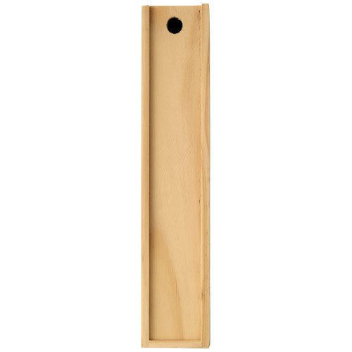 12 fargeblyanter i en gaveeske av tre med skyvelokk, som har linjal på baksiden. Dekorasjon er ikke mulig på delene.