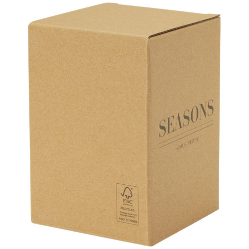 Middels stor matbeholder av glass med bambuslokk. Den kombinerer fordelene med glass, som er et trygt og slitesterkt materiale, med de fornybare egenskapene til bambus. Glassbeholderen (uten lokk) er mikrobølgeovn- og oppvaskmaskinsikker. Pakket i en eske av resirkulert kraftpapir. Kapasitet: 550 ml.