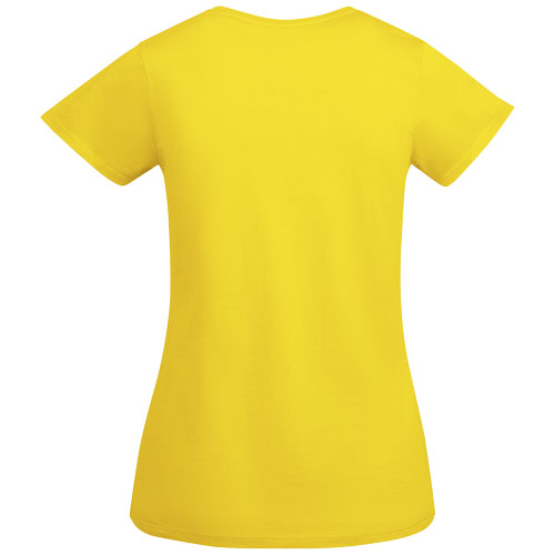 T-skjorte for dame med korte ermer i økologisk bomull sertifisert. Forsterkede sømmer i krage. Sidesømmer. Avtakbar etikett.