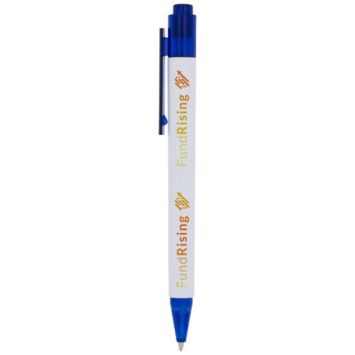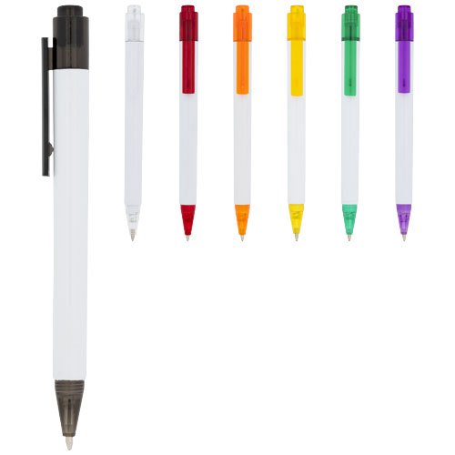 Calypso kulepenn har elegant, hvitt skaft med gjennomsiktig farget tupp og klips.