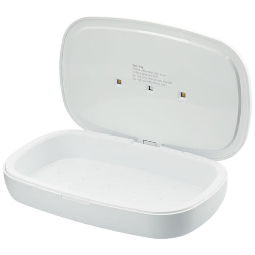 Capsule UV smarttelefon desinfiseringsboks med 5W trådløs ladematte kan både lade og rengjøre smarttelefonen din takket være de innebygde UV-C LED-lysene. Det er to desinfiseringsnivåer tilgjengelig. Trykk på knappen en gang for en kort desinfisering på 90 sekunder. Trykk på knappen to ganger for en dyp rengjøring på 5 minutter. Utenom smarttelefoner, kan Capsule rense alt som passer inn i esken, for eksempel nøkler, ørepropper og andre personlige eiendeler. I henhold til testing eliminerer den opptil 99,9% av bakterier som Escherichia coli, Staphylococcus og Candida albican. For å beskytte brukeren mot UV-lyseksponering, kan ikke produktet slås på når dekselet er åpent. Når esken åpnes under desinfiseringsprosessen, stopper desinfiseringen umiddelbart for å forhindre at øye / hud blir eksponert. Leveres i gaveeske. Innvendige mål: 181 x 104 x 26 mm.