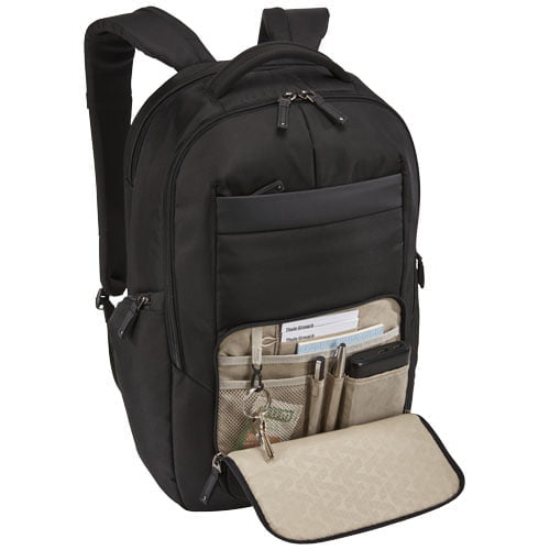 Stort hovedrom med glidelås og polstret lomme for 15,6" PC og 10,1" nettbrettlomme samt nettinglomme med glidelås for kabler og tilbehør. Leveres med et frontorganiseringspanel for lagring av småelektronikk, kabler, tilbehør, visittkort og nøkler. Inneholder utvidbare sidelommer for vannflaske eller mobillader, polstrede skulderstropper, vattert luftnetting på bakpanel, mykt håndtak og stropp for feste på koffert på baksiden. Garanti for Case Logic: 25 år.