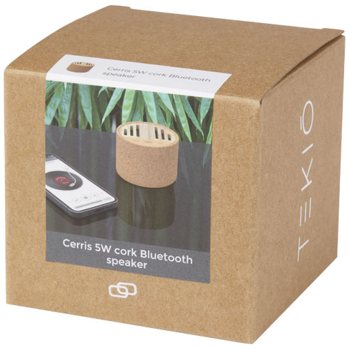 Cerris 5 W Bluetooth® høyttaler laget av kork og bambus er en akustisk naturlig skatt! Høyttalerkroppen og grillen er laget av ekte kork og bambus. Med en 5 W utgang gir denne kompakte høyttaleren utmerket lyd, som til og med har muligheten til å svare på samtaler mens du spiller musikk fra en telefon. Det innebygde 900 mAh batteriet gir opptil tre timers bruk ved maksimalt volum på én enkelt lading. Ladetid fra 0 % til 100 % på 2 timer. Bluetooth® 5.1 rekkevidde på opptil ti meter. 30 cm Type C ladekabel er inkludert. Leveres i en flott gaveeske. Siden kork og bambus er naturlige materialer, kan det være små variasjoner i farge og størrelse på hvert produkt som igjen kan påvirke det endelige trykkresultatet.