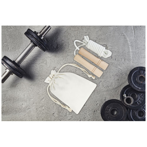 Kombiner moro og trening med dette hoppetauet for voksne. Tauet er laget av bomull og håndtakene er laget av bøk. Lengden på tauet er 310 cm, noe som gjør det enkelt å hoppe for voksne med høyde opptil 195 cm. Håndtakene (12 x 2,5 cm) er ergonomisk formet og gir et behagelig grep. Leveres med en oppbevaringspose i bomull (18 x 13 cm). Lasergravering anbefales som et bærekraftig dekorasjonsalternativ.