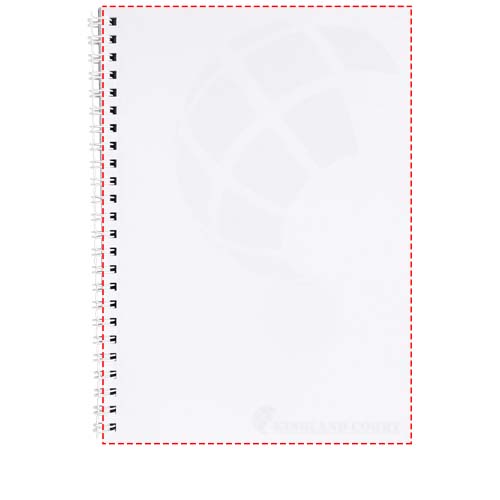 Desk-Mate® A5 notatbok med spiral. Inkluderer 50 blanke ark (80 g/m²) og frontomslag (450 g/m²). Omslaget er rive- og vannbestandig. Sort eller hvit spiral. Sidene i denne allsidige notatboken kan tilpasses slik du ønsker – enten du ønsker linjer, ruter eller dottet – alt er mulig!