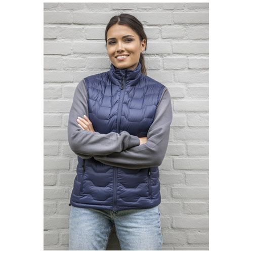 Epidote GRS resirkulert dunvest for dame – et bærekraftig og stilig ytterplagg for miljøbevisste eventyrere. Denne vesten er laget med presisjon og omtanke og er GRS sertifisert, noe som gjør den til et mer bærekraftig tilskudd til garderoben din. Det vatterte bikakemønsteret er designet for komfort og varme, og det GRS sertifiserte, resirkulerte 380T-vevde stoffet i kjedelig nylon gir slitestyrke og værbestandighet. Alt tilbehør, inkludert glidelåser, er laget av resirkulerte materialer, slik at alle aspekter av denne vesten bidrar til en grønnere planet. Epidote vesten er utstyrt med praktiske funksjoner, som lommer foran med glidelås og en innvendig lomme nederst til venstre for sikker oppbevaring. Den innvendige stormklaffen med hakebeskyttelse beskytter deg mot vær og vind, mens den elastiske snoren med justerbar snørelås i nederkanten gjør det mulig å tilpasse passformen. Det elastiske båndet på hetten gir ekstra beskyttelse mot kald vind. RDS sertifiserte resirkulerte fjær gir varme uten at det går på bekostning av etiske standarder. Med GRS sertifisering som garanterer en 100 % sertifisert leverandørkjede, er dette plagget et miljøbevisst valg. Denne vesten er designet med en figursydd passform som gir et feminint utseende.