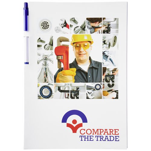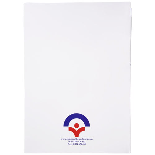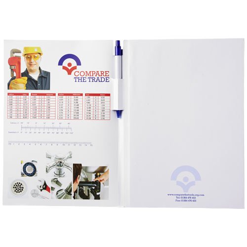 Essential konferansepakke A4. Inkluderer en A4 notisbok med 50 ark (80g/m2) blankt papir og en calypso penn i ryggradområdet. Konferansepakken har en hard perm (350g/m2). Fullfarget dekorasjon mulig på begge sider av dekselet, så vel som på hvert ark.