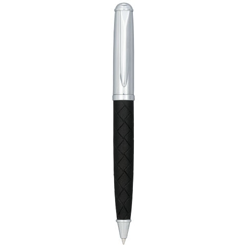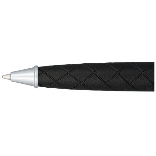 Eksklusivt designet kulepenn med s krysslinjemønster i skinn pakket rundt den nedre kroppen. Inklusiv premium sort påfyll og pakket i en "LUXE" gaveeske (16×4.5×2.5cm).