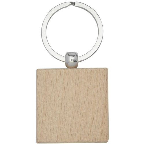 Firkantet nøkkelring laget av bøk, levert i en konvolutt av brunt resirkulert kraftpapir. Størrelsen på nøkkelringen er 4 x 4 cm. Laget for lasergravering.
