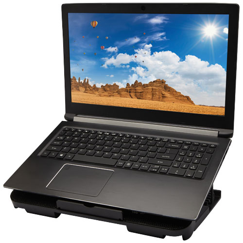 Kjølestativ for PC med 4 nivåer justerbare høydeinnstillinger, for å spille eller se film i den mest komfortable vinkelen (10°– 23°). To stille vifter leverer en sterk luftstrøm for å forhindre at laptopen overopphetes. Stor flat overflate som er kompatibel med de fleste laptoper på markedet, tåler maksimalt 20 kg vekt. Stativet kan brettes opp helt for enkel transport. Integrert med 2 USB porter som kan brukes som en USB hub med USB 2.0 støtte for overføringer på opptil 60 MB/s. Leveres i gaveeske laget av bærekraftige materialer.