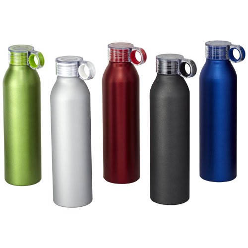 Flott utseende og lett, det er Grom 650 ml sportsflaske i aluminium i et nøtteskall. Det gjennomsiktige skrulokket er sølebestandig og har et hull for enkel bæring. Den matte metalliske finishen gir flasken et stilig utseende. Uansett hva det er å feire, vil Grom flasken garantert glede enhver mottaker.