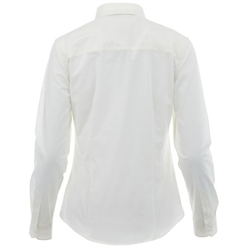 Hamell langermede stretchskjorte for kvinner – en perfekt kombinasjon av stil og komfort. Denne vevde skjorten er laget av et lett poplinstoff med 97 % bomull og 3 % elastan. Poplin-stoffet er kjent for sin tette veving, som gir eksepsjonell slitestyrke samtidig som det har en myk og glatt tekstur mot huden. Det betyr at Hamell-skjorten ikke bare er behagelig å ha på seg, men også motstandsdyktig mot hverdagsslitasje, noe som sikrer langvarig bruk. Den ekstra elastisiteten gir optimal bevegelsesfrihet, noe som sikrer optimal komfort gjennom hele dagen. Den skjulte button-down-kragen gjør skjorten sofistikert, samtidig som den gir et stilrent uttrykk. Skjorten er designet med en figursydd passform for et feminint utseende.