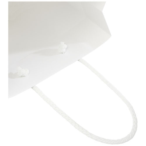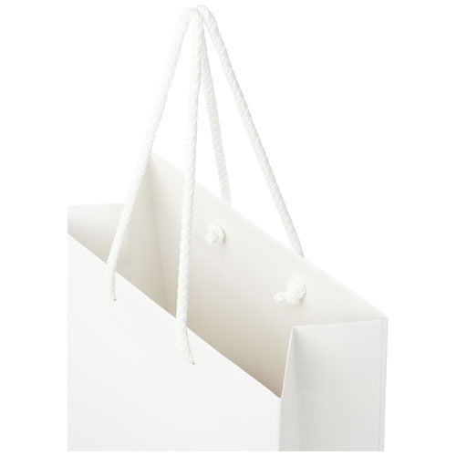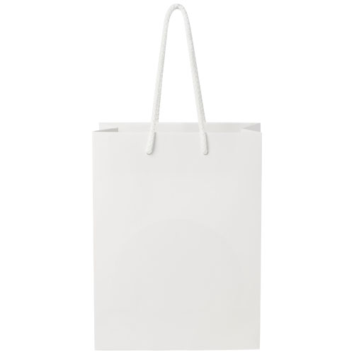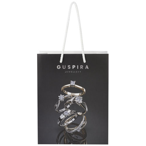Medium håndlaget matt 170 g/m2 Integra papirpose (18 x 9 x 23 cm) med plasthåndtak. Store logomulighet på både for- og baksiden gjør den perfekt til markedsøfring av logo/budskap. Produsert i Europa og 100% resirkulerbar.