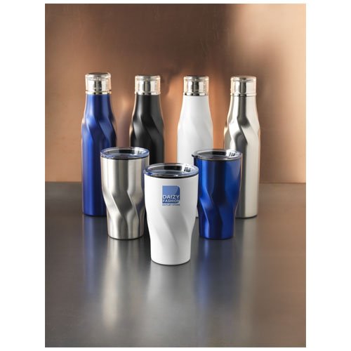 Lekkasjesikker kork med vri-/drafunksjon, bred åpning for god drikkeopplevelse samt enkel påfylling og tømming.Dobbeltvegget vakuumkonstruksjon i rustfritt stål med kobberisolasjon, som også forhindrer kondens på utsiden. Det vridde geometriske designet er PF’s eget design.Holder din drikke varm i 12 timer og kald i 48 timer. Volum 650 ml. Avenue gaveeske.