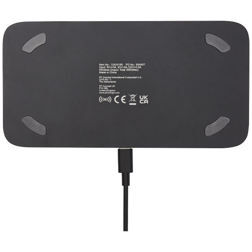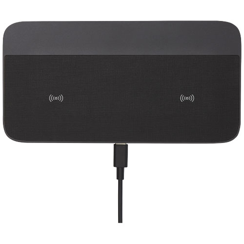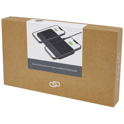 Hybrid 15 W premium dobbel trådløs ladeplate er et must for ethvert kontorpult. Den passer enkelt i lommene på en PC veske, takket være sitt ultraslanke design. Laget av slitesterkt aluminium kombinert med en sklisikker ladeplate av TPU skinn. Med opptil 15 W trådløs ladeutgang kan to enheter lades opp raskt og samtidig. Kompatibel med alle Qi enheter (iPhone 8 eller nyere og Android enheter som støtter trådløs lading). Innebygd FOD (deteksjon av fremmedlegemer) for å identifisere uønskede objekter og sikre en jevn ladeprosess. Leveres i en flott gaveeske. Type C ladekabel er inkludert.