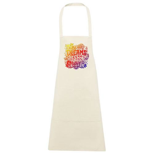 Hvis du er ute etter et bomullsforkle med førsteklasses kvalitet, er Khana-forkleet akkurat det du trenger. Det er laget av 280 g/m² cerret, noe som gjør det tykt og robust, men likevel behagelig å bruke. Det har to lommer ved siden av hverandre (måler 25 x 26 cm og 16 x 18 cm) og 65 cm knyting bak.