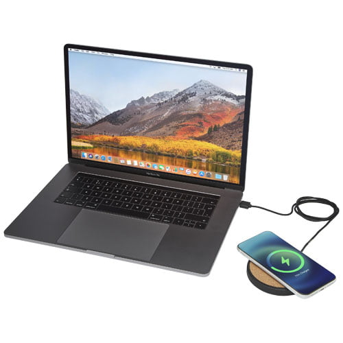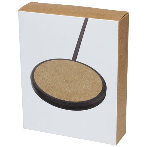 10 W trådløs ladeplate laget av en kombinasjon av naturlig kalkstein og kork. For å lade en enhet uten trådløs teknologi kreves en ekstern trådløs lademottaker eller mottakerboks. Pakket i gaveeske og leveres med en manual (begge i bærekraftig materiale).