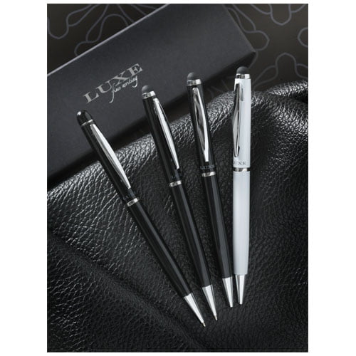 Eksklusivt designet stylus-penn med vrimekansime med fløyelsveske. Pakket i en " LUXE" gaveeske (størrelse: 17 x 3,5 x 2 cm).