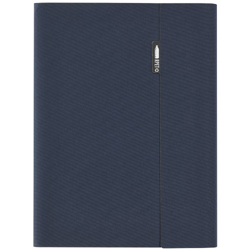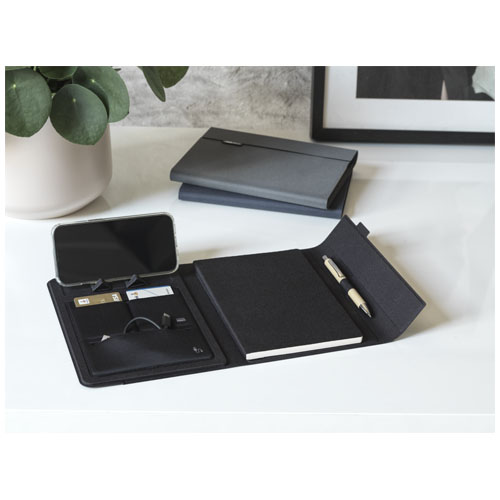 Den RCS sertifiserte Liberto padfolioen/dokumentmappen er delvis laget av resirkulert tidligere brukt polyester, noe som gjør den til et mer bærekraftig valg siden den bidrar til å redusere bruken av nye råvarer. Med penneløkke, trekkspillomme og 64 kremfargede ark med 80 g/m2 resirkulert papir fra bærekraftige kilder. Pennen og annet tilbehør som vises på bildene er ikke inkludert i dette produktet.
