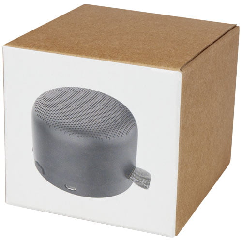 Trådløs høyttaler laget av resirkulert ABS-plast. Det er også standarden som brukes når en del av varen er laget av resirkulerte materialer. Opplev favorittmusikken din med denne kraftige trådløse 5 W-høyttaleren, som har Bluetooth® 5.0 for stabil tilkobling og høykvalitetslyd. Tilkoblingsområde opptil 10 meter. Høyttaleren har et 600 mAh oppladbart Li-on-batteri som sikrer opptil 4-timers avspillingstid ved max volum. Det har en integrert AUX-kontakt for tilkobling via lydkabel. Leveres i en gaveeske med instruksjonsveiledning (begge er laget av bærekraftige materialer).