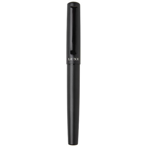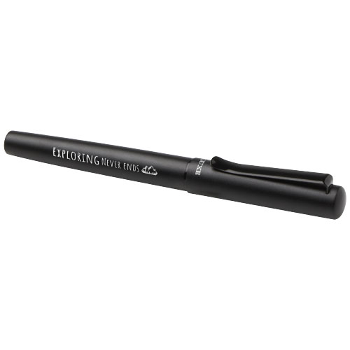 Fyllepenn med pennekropp av resirkulert aluminium, utstyrt med matt sort belegg og svart resirkulert aluminiumsgrep. Aluminium er et resirkulerbart materiale. Ved å velge denne pennen støtter du en mer bærekraftig praksis, og gir nytt liv til kasserte aluminiumsmaterialer. Denne stilige fyllepennen fungerer som et praktisk og mer bærekraftig alternativ for enkeltpersoner og organisasjoner som leter etter miljøvennlige skriveredskaper. Leveres med en svart patron og en svart gaveeske. Boksstørrelse: 16,8 x 4,2 x 2,5 cm.