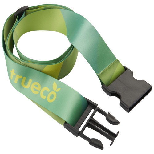 Fullfarge sublimert koffertbånd. Kan trykkes på ene eller begge sider av båndet. For dobbeltsidig trykk kan du velge mellom standard eller tilpasset alternativ (tilpasset betyr at trykket er på linje på begge sider av båndet). Koffertbåndet beskytter din bagasje, og gjør det enkelt å identifisere din koffert på bagasjebåndet.