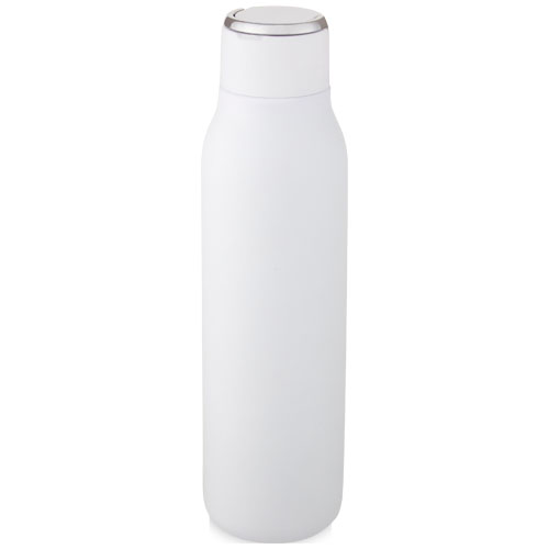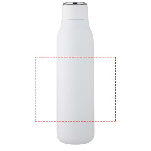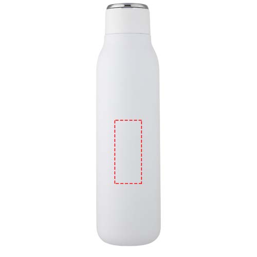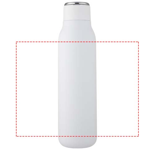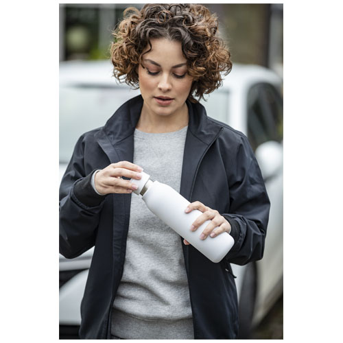 Marka flasken har vakuumkonstruksjon av rustfritt stål med kobberisolasjon som holder drikker varme eller kalde i flere timer. Den isolerte 18/8 rustfrie stålkonstruksjonen forhindrer kondens på utsiden av flasken, mens den trendy pulverspray finishen gjør den ekstra holdbar. Den har også et sølebestandig skrulokk og en slitesterk håndløkke av sinklegering. BPA fri, testet og godkjent i henhold til tysk lovgivning for matsikkerhet (LFGB) samt testet og godkjent for ftalater i henhold til REACH forskriftene. Passer de fleste standard bilkoppholdere. Kapasitet 600 ml. Håndvask anbefales. Leveres i en hvit gaveeske i papp.