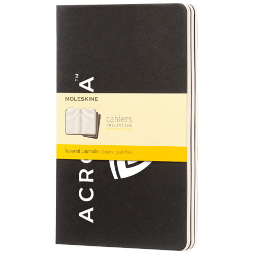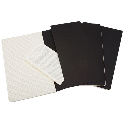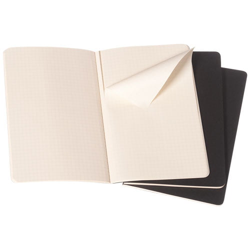 Med omslag i papp og avrundede hjørner. Synlig søm på ryggraden, med klaff for å samle løse notater. Inneholder 80 70 g/m2 rutede sider i elfenbensfarge. De siste 16 arkene er avtakbare. Leveres enkeltvis (ikke i sett med 3 som avbildet).