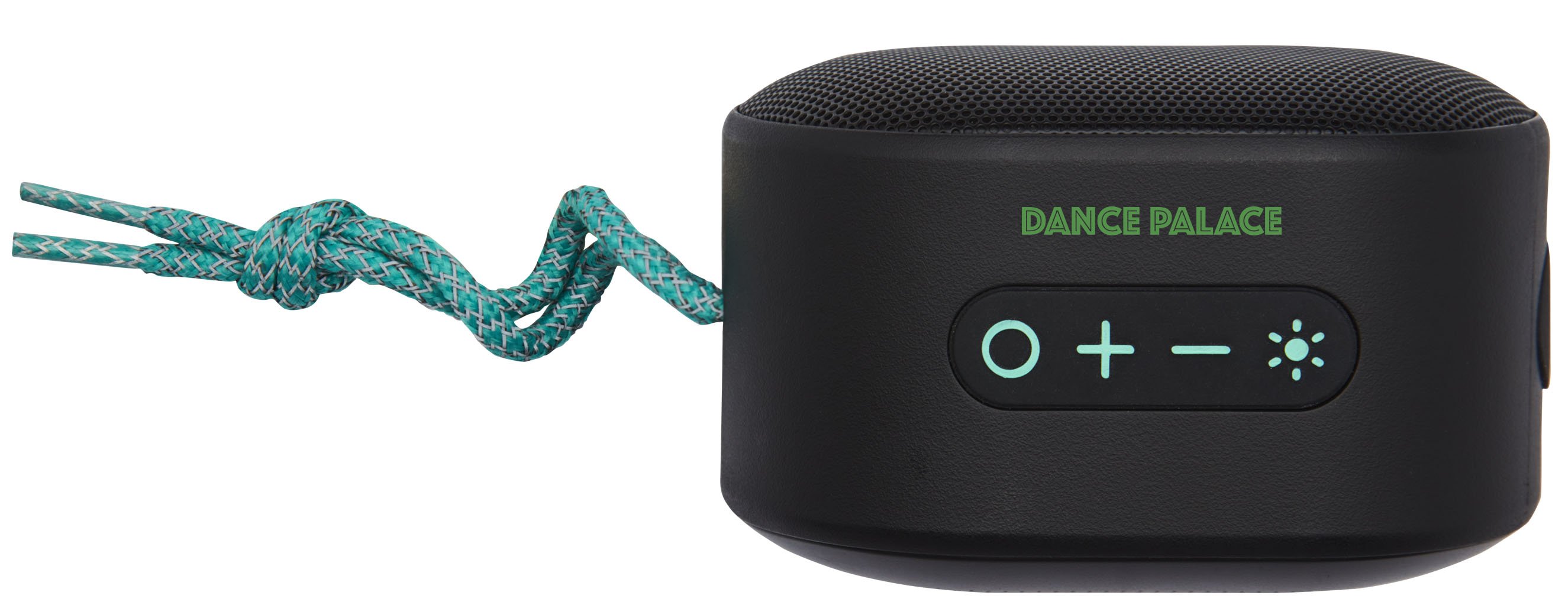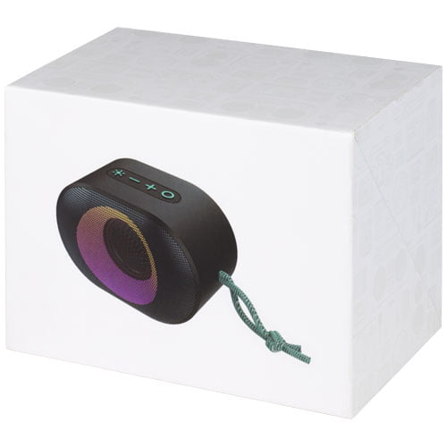 Kraftig 7W IPX6-sertifisert trådløs høyttaler, perfekt for utendørsaktiviteter som piknik, grill, strand eller bassengfest. Det innebygde 1500 mAh-batteriet sørger for opptil 4,5 timers avspillingstid ved max volum, med RGB-stemningslys på. Bluetooth®-5.0 med avstand på opptil 10 meter. Innebygd mikrofon, hentefunksjon og stemmeassistent for håndfri kontroll. Høyttaleren har AUX-kontakt og TF-kortspor (kort ikke inkludert). Levert i en premium gaveeske.