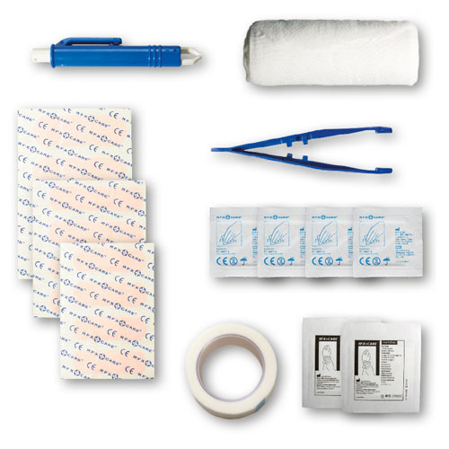 Et ideelt førstehjelpsskrin for dyreeiere. Dette settet forbereder deg på små skader eller ulykker på tur og lar deg behandle kjæledyret ditt etter et flåttbitt. Innhold: 12 vannbestandige plaster, 4 hudrensende vattpinner, 2 tørre vattpinner, 1 flåttfjerner, 1 elastisk bandasje, 1 pinsett, 1 taperull. Alle førstehjelps- og behandlingsprodukter i settet oppfyller alle gjeldende EU-forskrifter. Prisen inkluderer fullfarge trykk av etiketten.