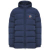 Vattert sportsparkas.Hette med brem. Glidelås foran i samme farge og hakebeskytter. Elastiske mansjetter. To sidelommer med glidelås. Innerlomme på venstre bryst og tilgang til innsiden for logoer. Avtakbar etikett. Vanntett. Vindtett.