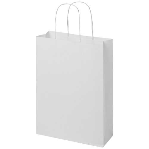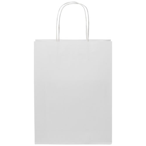 Medium 120 g/m2 pose av kraftpapir (24 x 9 x 32 cm) med vridde papirhåndtak. Store logomulighet på både for- og baksiden gjør den perfekt til markedsøfring av logo/budskap. Produsert i Europa og 100 % resirkulerbar, noe som gjør denne posen til et mer bærekraftig valg for miljøbevisste bedrifter og enkeltpersoner på jakt etter en bærekraftig emballasjeløsning.