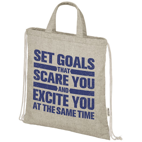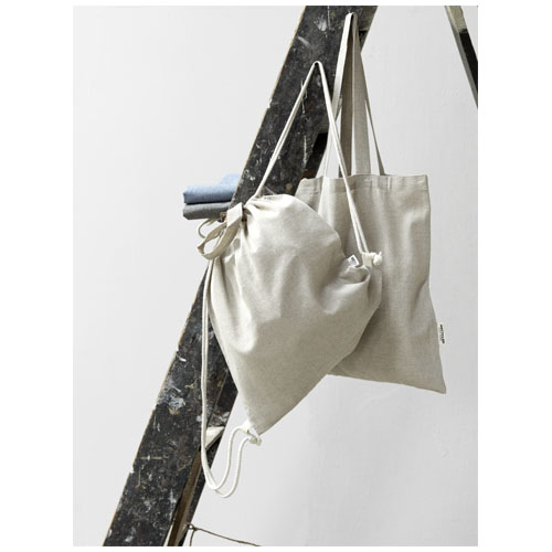 Gympose med snøring laget av en 150 g/m² resirkulert bomullspolyesterblanding. Stort hovedrom med bomullssnorlukking i naturlig farge. Resirkulert bomull produseres fra fabrikasjonsavfall generert av tekstilfabrikker under tilskjæringsprosessen. Lignende farger blandes sammen, som betyr at det ikke trengs ekstra farging. På grunn av naturen til resirkulert bomull, kan det være en veldig liten fargevariasjon. Dette bidrar tydelig til et mer autentisk utseende. Hver gympose kommer også med en Aware™ sporing. Denne innovative funksjonen lar brukere spore varens opprinnelse og reise gjennom en QR kode, noe som øker åpenheten i forsyningskjeden og fremmer en sterkere forbindelse mellom produktet og produksjonsprosessen. Kan holde opptil 5 kg. Håndtakslengde: 14 cm.