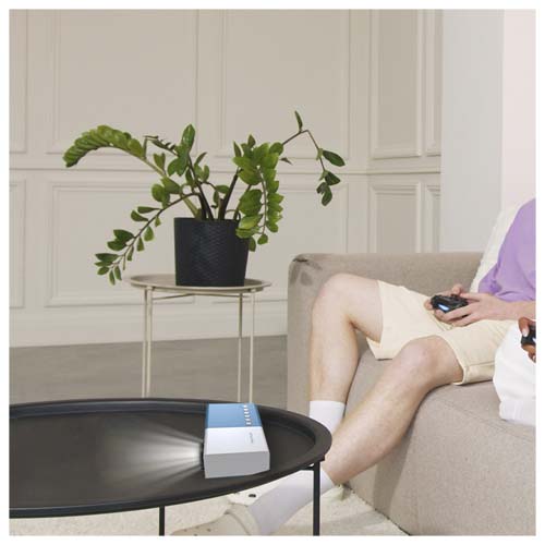 Cinema miniprojektoren gjengir videoer med høy bildekvalitet og er kompatibel med 1080p full HD i tillegg til 1080i, 720p, 576i, 480p og 480i via HDMI. Inkluderer en fjernkontroll for større komfort og to stereohøyttalere. I tillegg til video kan den også projisere lyd, bilder og tekst.