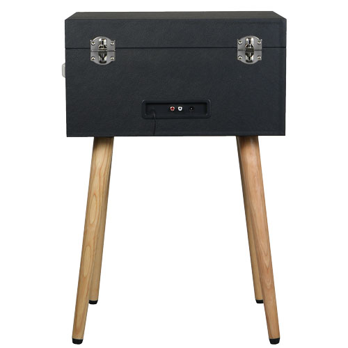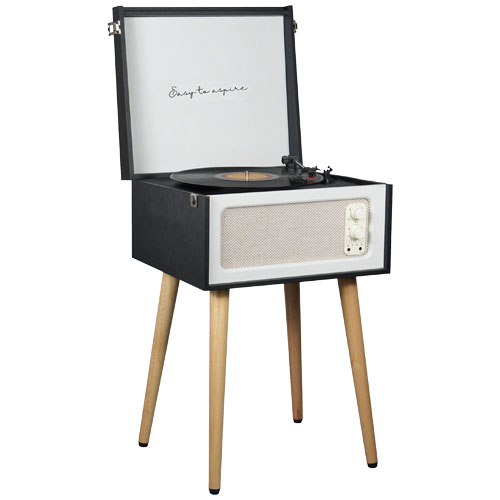 Vinylplatespiller med to høyttalere på 5 W hver. Den har integrert FM-radio og en trådløs Bluetooth® 5.0-tilkobling for å koble til enheter og spille av musikk, 2 RCA-lyd- og hodetelefonutganger. Platespilleren inkluderer en rubinstift og en støvhette. Vintage design med treben.