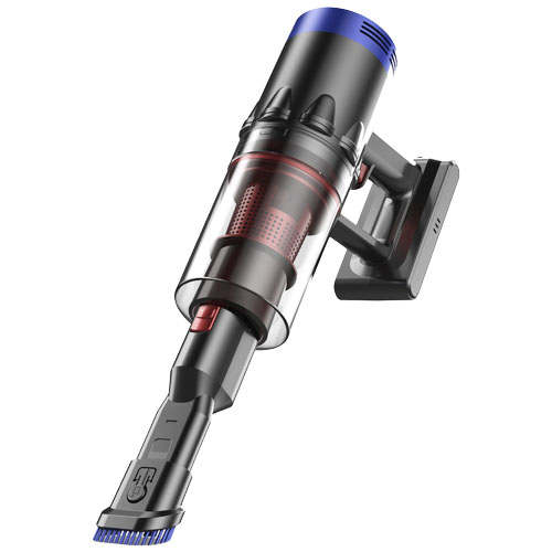 Støvsuger med 2 hastighets-/effektnivåer. Batteri 25,9 V. 2 500 mAh. Ladetid 4,5 – 5 timer. Pulverbeholderens kapasitet: 0,65 liter. Rørlengde: 68 cm. Motorisert børste 20 W. Hepa filter. Volum i desibel <76 dB. Sugetrykk lav modus 7 kPa / høy modus 21 kPa. Motoreffekt 350 W. Inkluderer enhet for veggmontering.