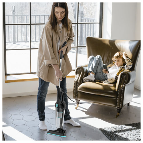 Støvsuger som også konverteres til en håndholdt støvsuger. Når den er festet til ledningen har den 600 W effekt, HEPA-filter og et sugetrykk på 15 kPa. Tilbehør inkluderer: koblingsledd, konverteringsledd, firkantet børste, skjøteledninger, rundbørste, albuerør, spaltet dyse, lang dyse. Støvbeholderens kapasitet: 0,5 L. Volum i desibel: ≤ 78 dB.