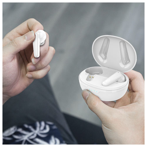 Ørepropper med ENC og ANC teknologi som reduserer omgivelsesstøy slik at den som ringer kan høres tydelig i samtaler (ENC), og musikk fra en tilkoblet enhet (ANC). Med det kraftige batteriet har øreproppene opptil sju timers autonomi på én enkelt lading. Ladetid ørepropper: 1,5 timer. Fulladet etui kan lade øreproppene opptil tre ganger.