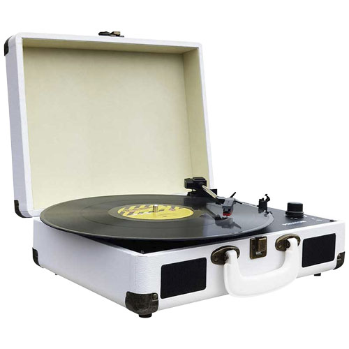 Vinyl- og musikkspiller via Bluetooth, USB, TF og FM radio. Digitaliserer vinyl i WAV format gjennom USB inngangen og TF sporet. Den har RCA hodetelefoner og lydutganger. Den inkluderer en rubinnål for fin avspilling av plater. Designet som en koffert. Den kobler en mobiltelefon til Bluetooth og bruker høyttalerfunksjonen. Hastighet: 33,3/45/78 o/min. Rubinål inkludert.