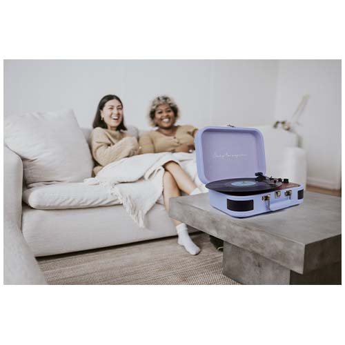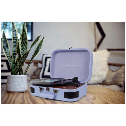 Vinylplatespiller og musikkspiller med Bluetooth® 5.0, USB, TF og FM radio. Digitaliser vinyl til WA format via USB inngang og TF spor. Den har RCA lydutgang og leveres med et par hodetelefoner. Den inkluderer en rubinstift for fin avspilling av plater. Designet som en koffert. Dreieskiven kan kobles til en mobil enhet via Bluetooth® for å bruke høyttalerfunksjonen.