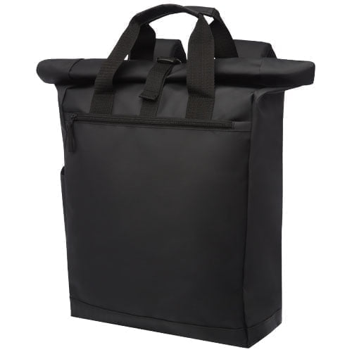 Vannbestandig ryggsekk med polstret lomme til bærbare datamaskiner, polstrede justerbare skulderstropper, hovedrom med glidelåslukking på toppen og 2 bærehåndtak.