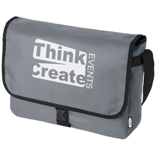 Skulderveske laget av resirkulert PET-plast med en justerbar skulderrem. Med et hovedrom som lukkes med klaff og en spennelukking.